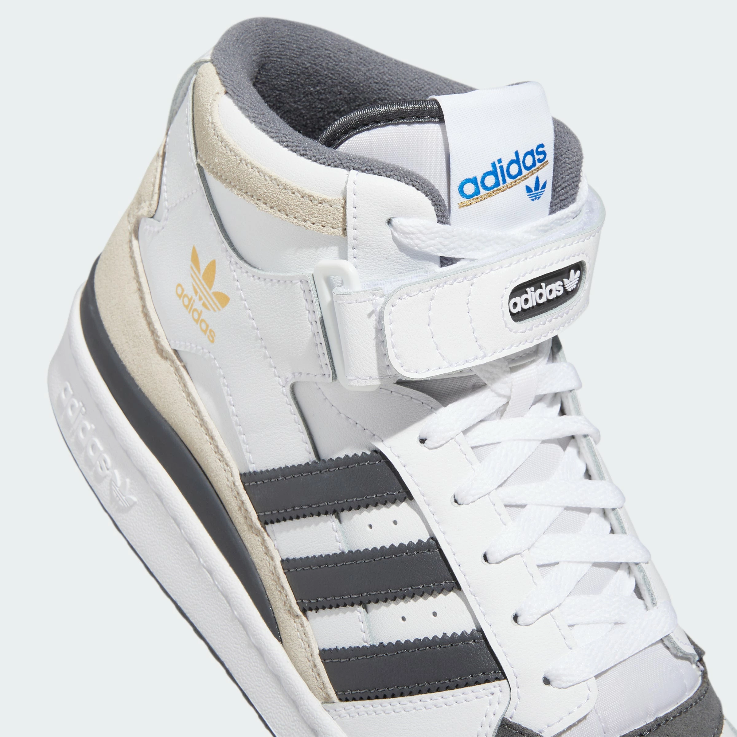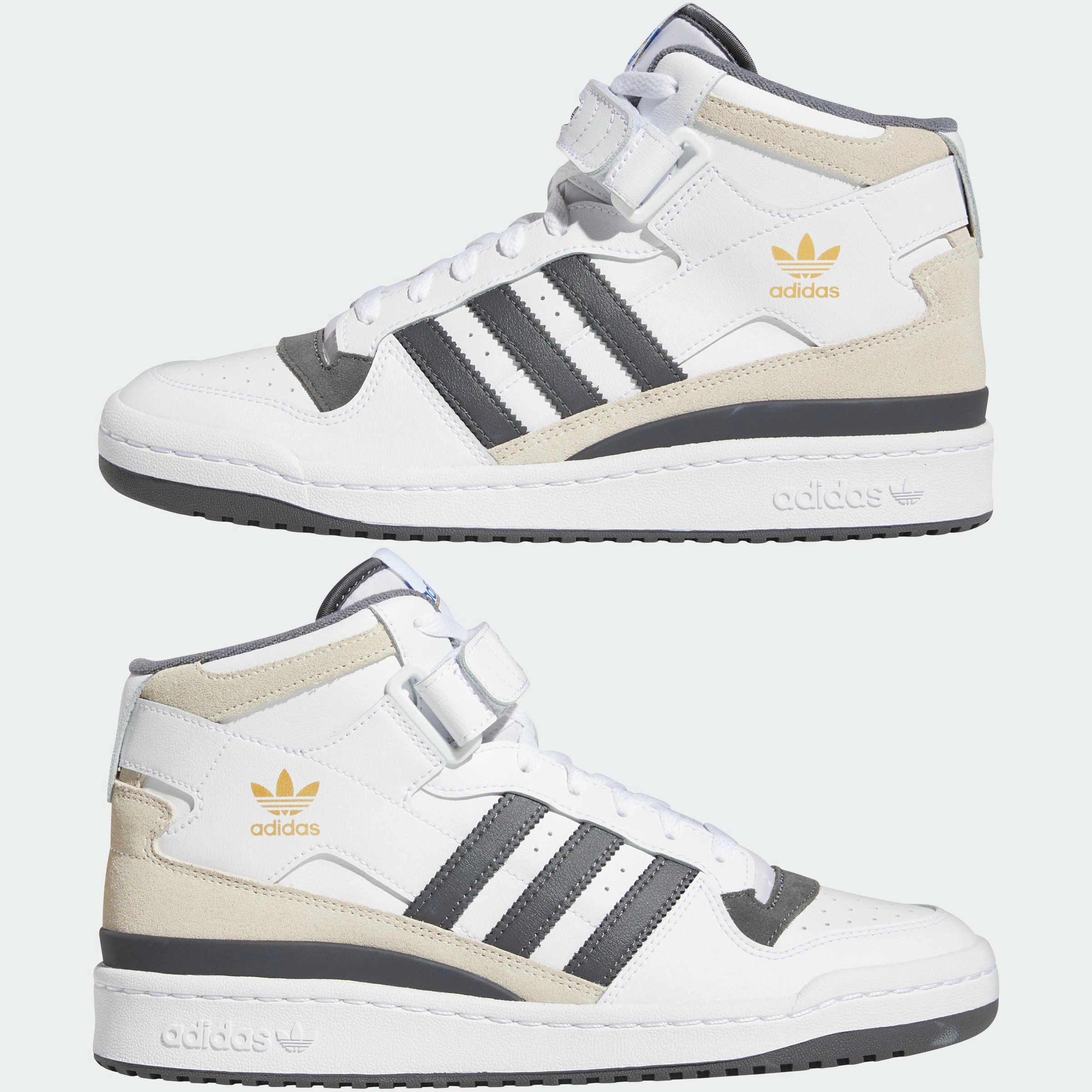 Hardwood heritage is back. The adidas Forum Mid Shoes boast a look from the archives that are built with a mid-cut silhouette in coated leather. Lace closure with an adjustable strap near the top makes these kicks stand out. Iconic adidas 3-Stripes are serrated along the sides of the shoes. Fresh clean kicks for a fresh new start.