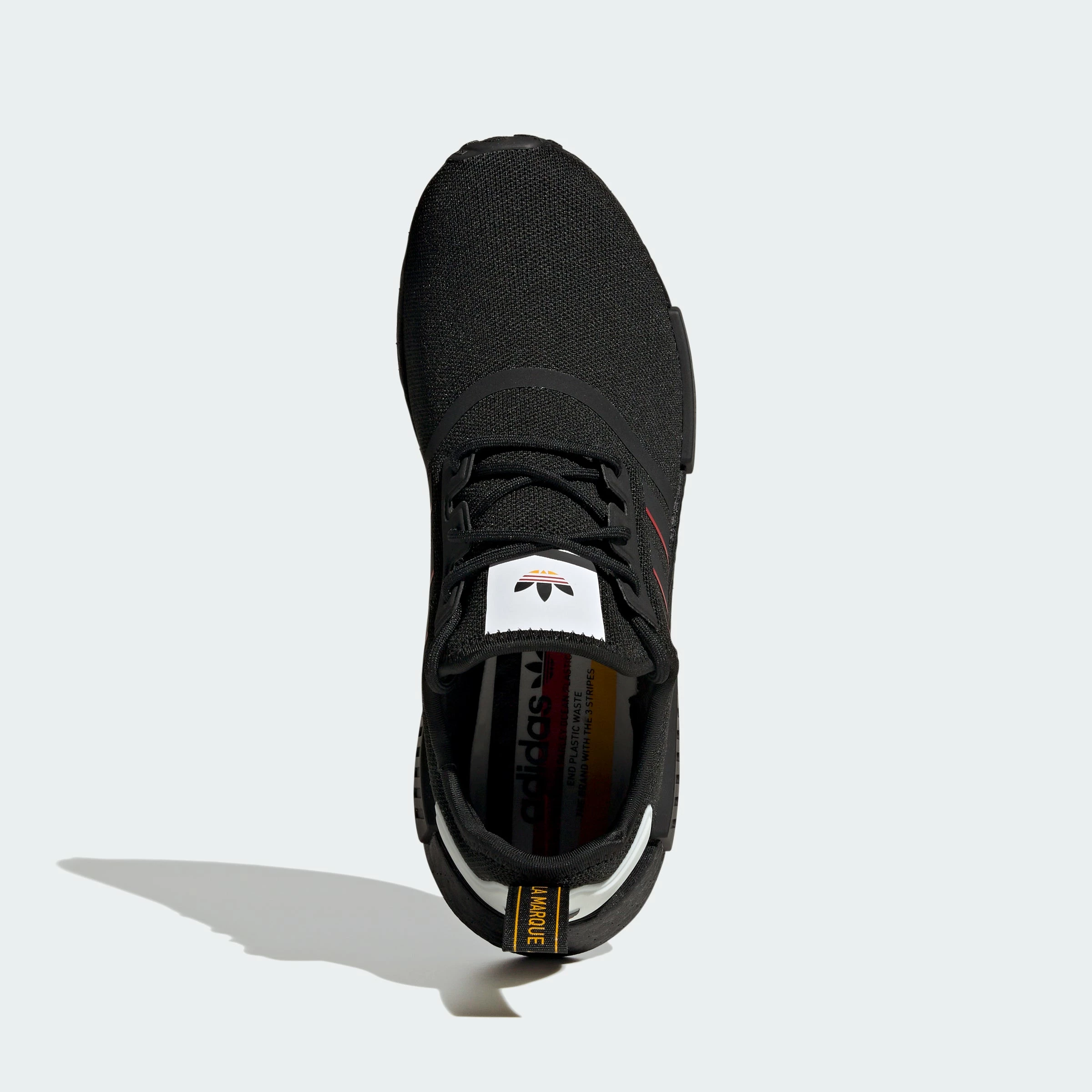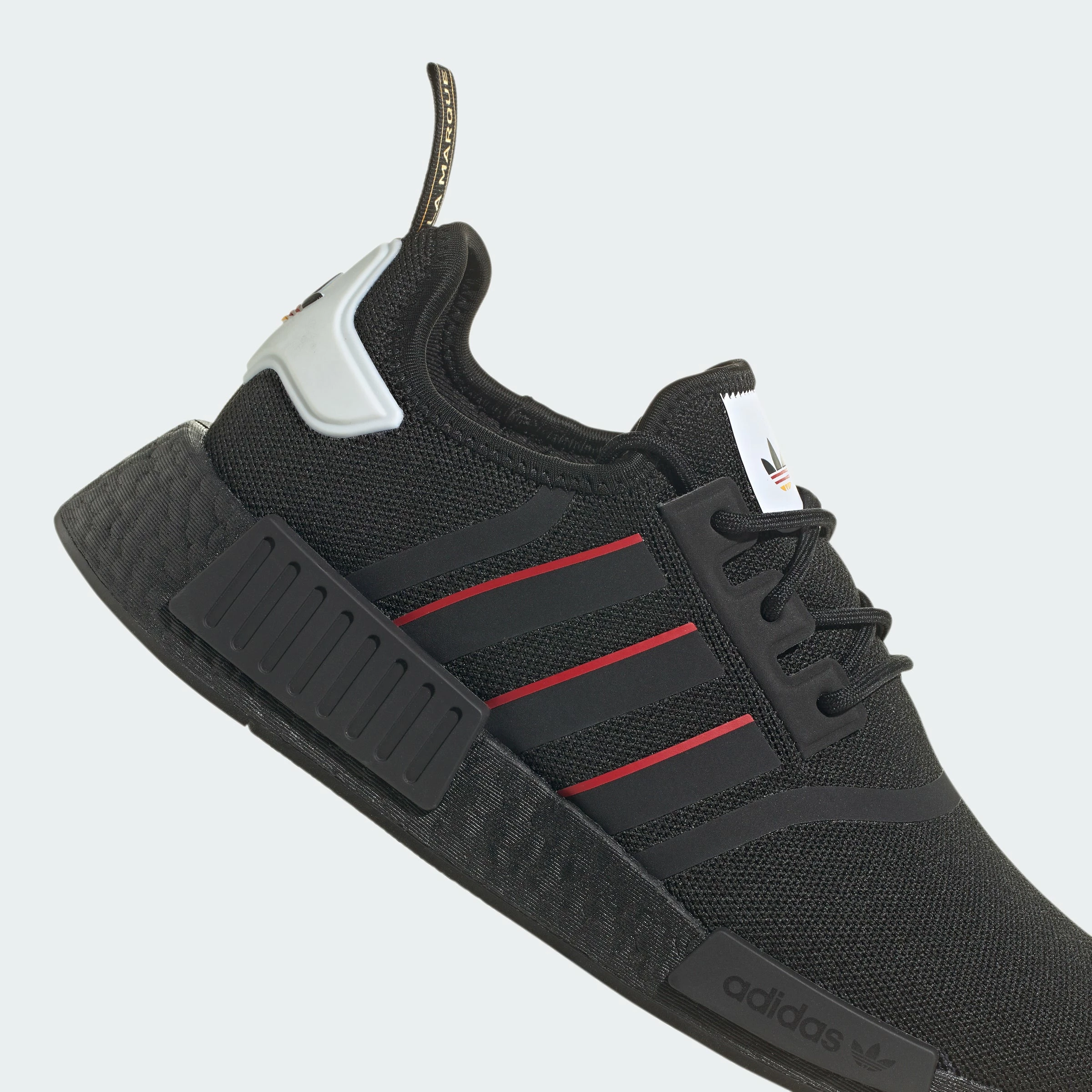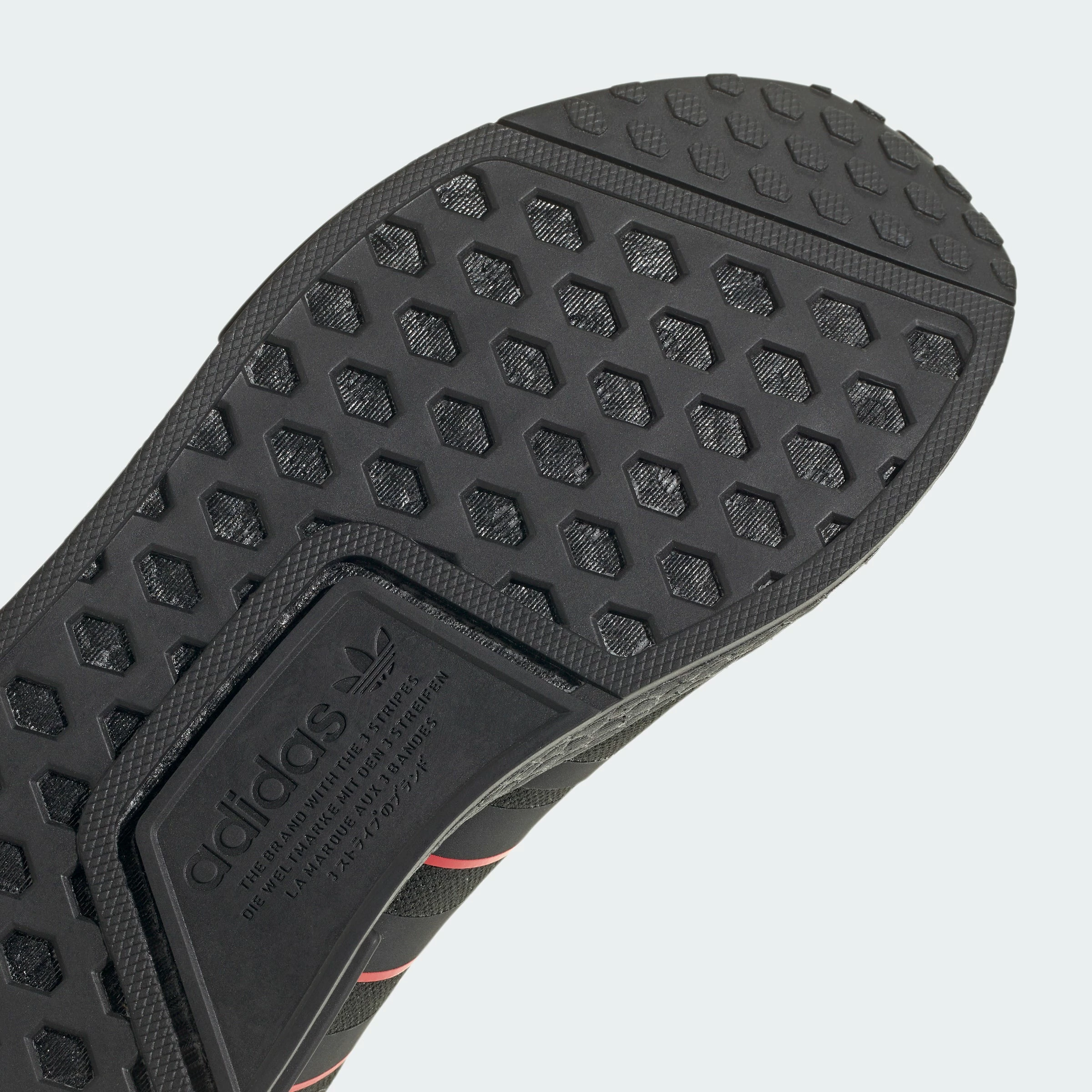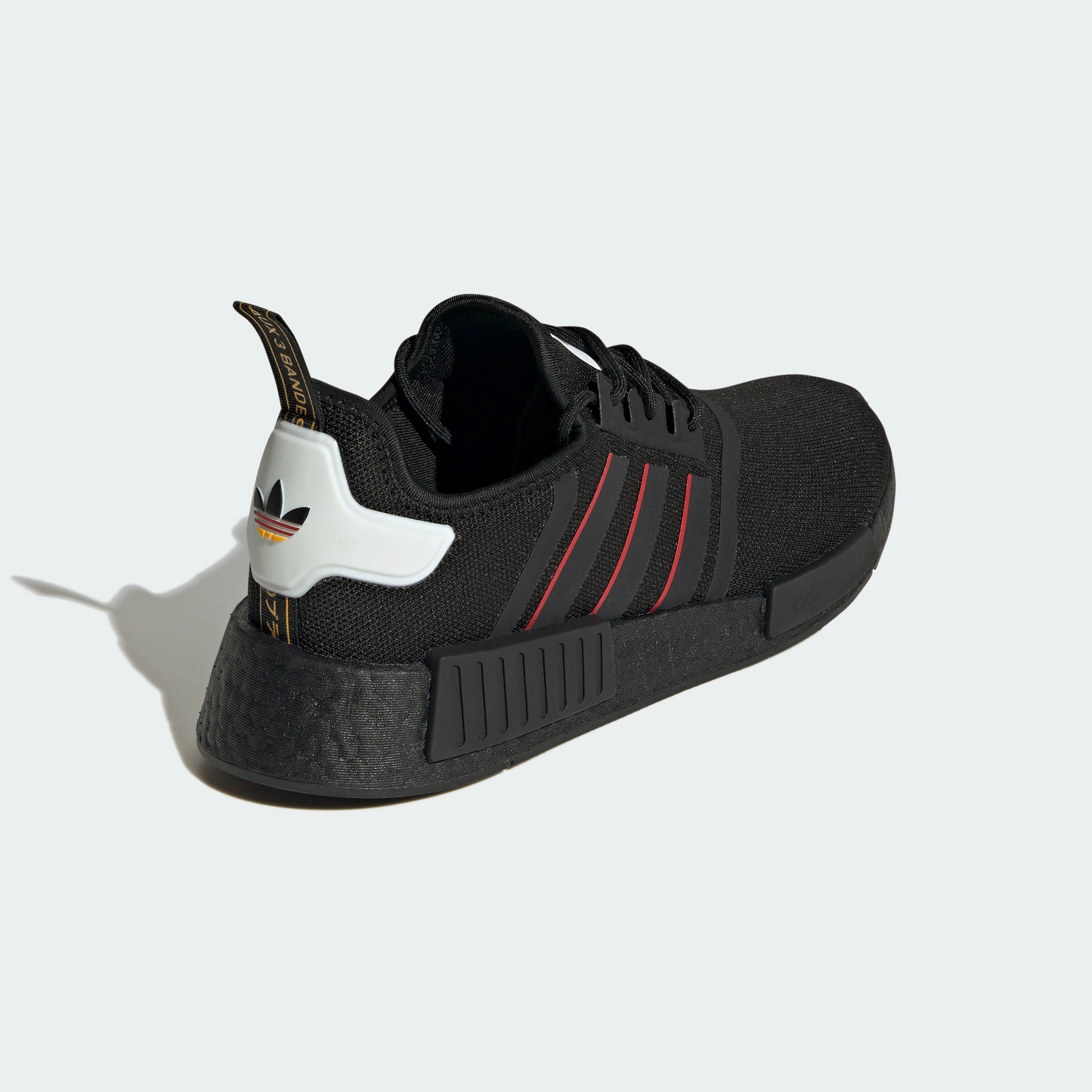 Made for the modern hustle. Gear up in adidas NMD_R1s and hit the ground running in comfort and style. The adidas kicks come in a black colorway with pops of red. The NMDs are constructed of soft, stretchy knit with Boost cushioning. The flexible uppers give your feet a snug fit and feels as comfy as socks. Stay energized on the go and in style.
