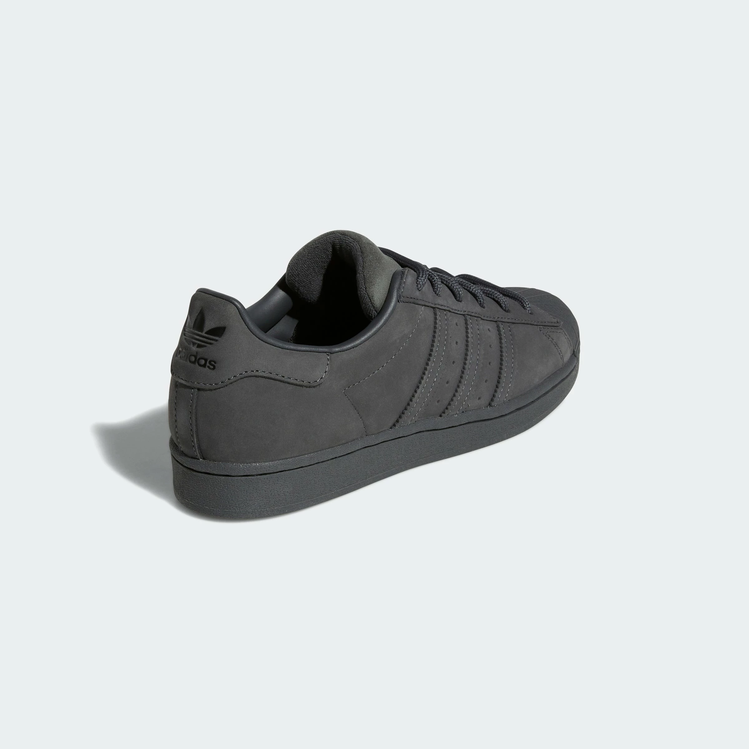 No shoe has more clout than the adidas Superstar. Maintaining the classic look of the original, the Superstars come in a dark grey hue capturing the essential style with its low-profile cupsole and clean trim. Built with all the classic details including the serrated adidas 3-Stripes down the sides and the shell-toe.