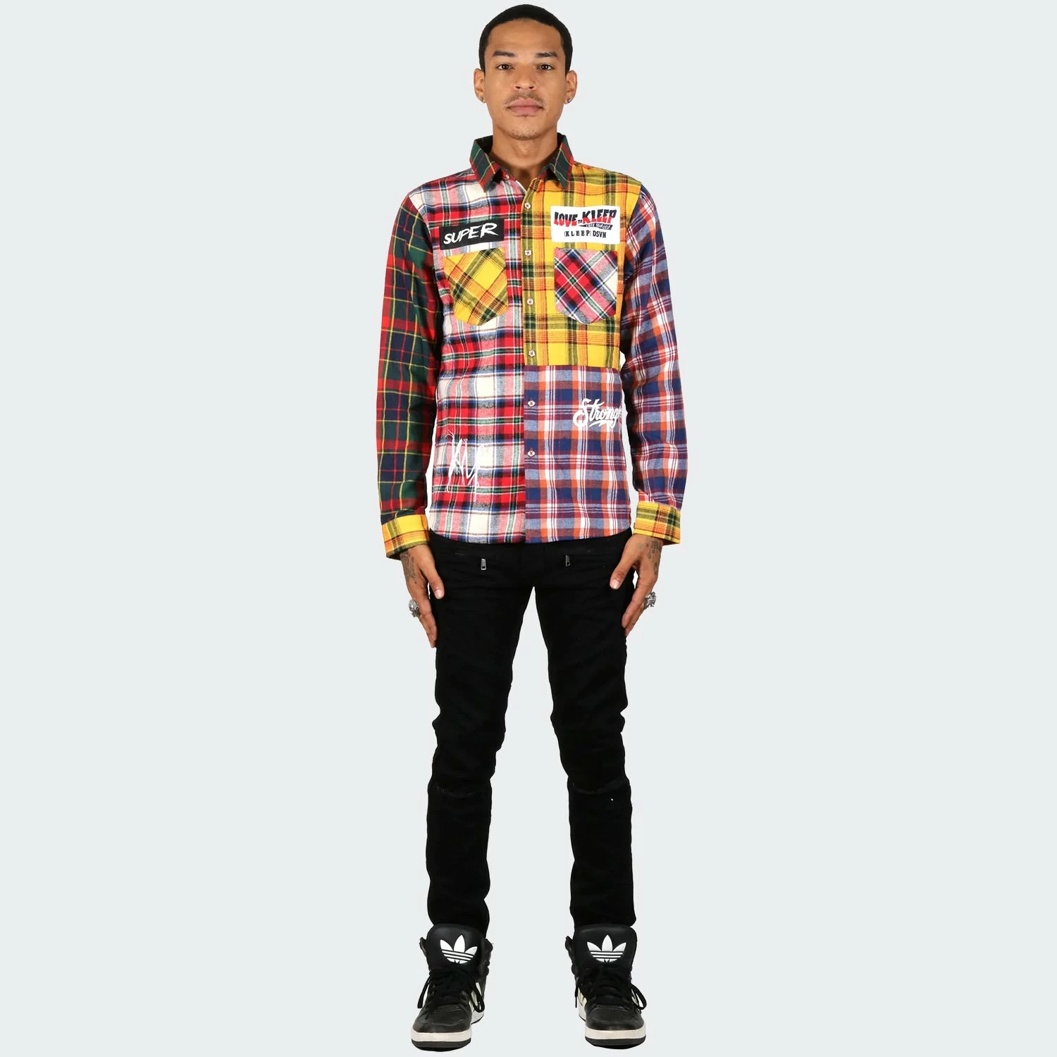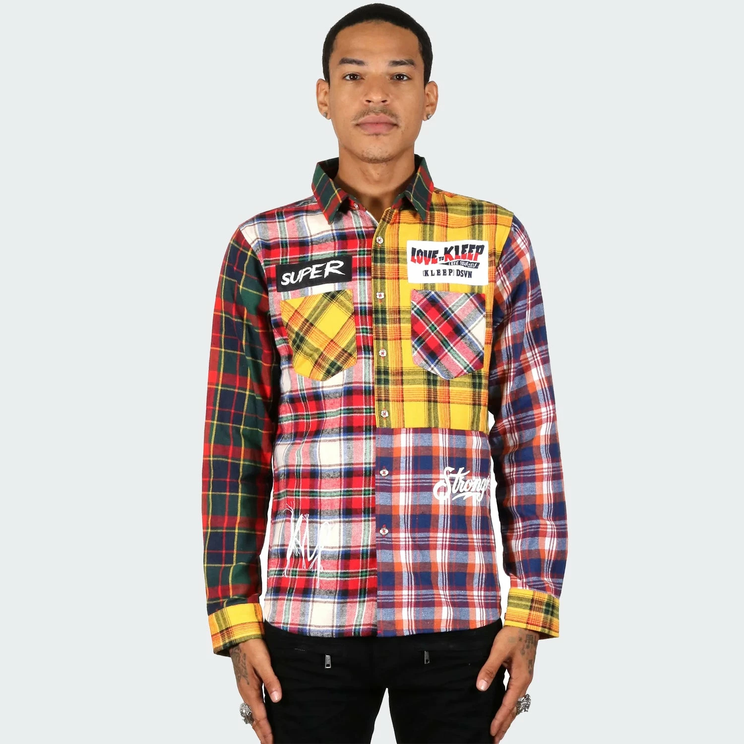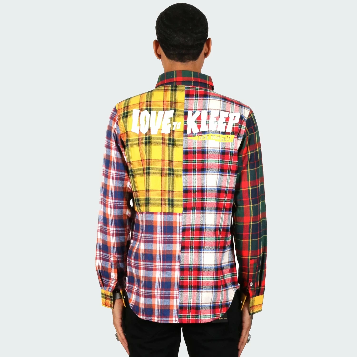 Add flannel this season to your rotation with the KLEEP DIGRIS Premium Flannel Button Down Shirt. The KLEEP shirt is designed with mixed flannel cut block. Print patch and screen print decorate the front and back of the long-sleeve shirt. Pair it up with your newest distressed jeans and Jordans. Love yourself with KLEEP.