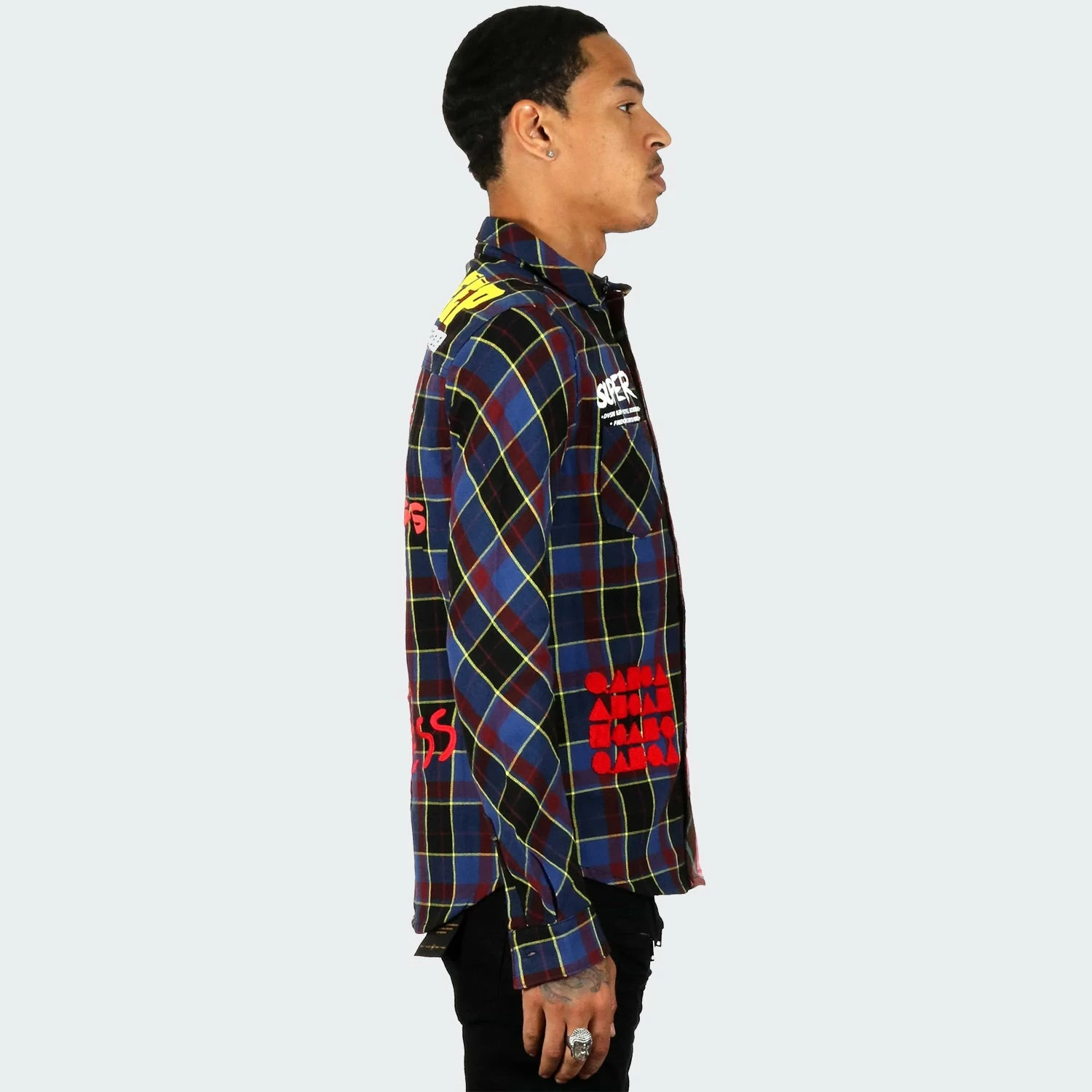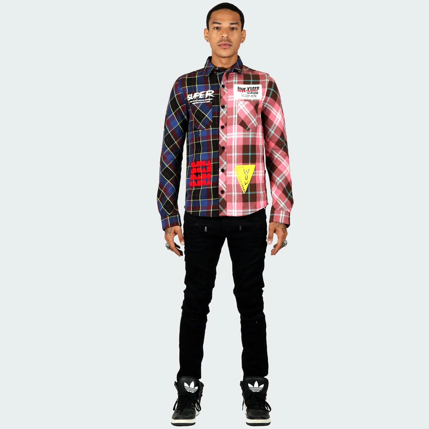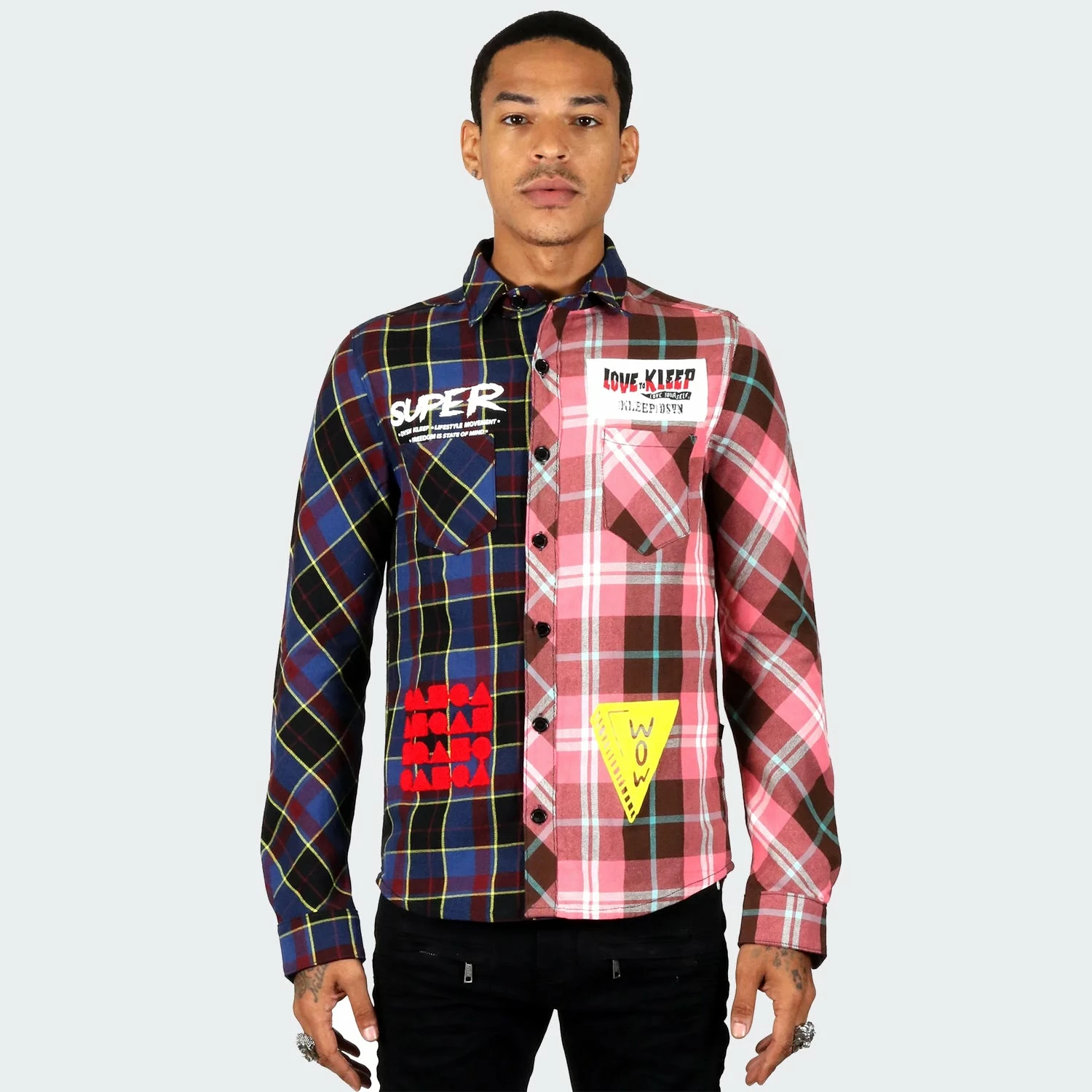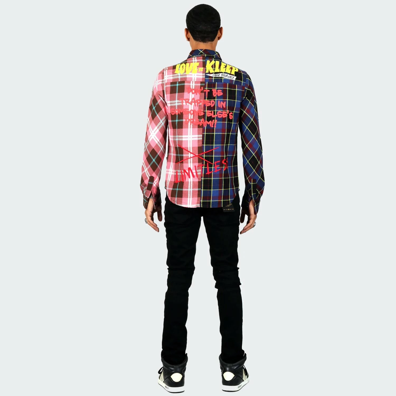 Add flannel this season to your rotation with the KLEEP PUCE Premium Flannel Button Down Shirt. The KLEEP shirt is designed with mixed flannel cut block. Print patch and screen print decorate the front and back of the long-sleeve shirt. Pair it up with your newest distressed jeans and Jordans. Love yourself with KLEEP.