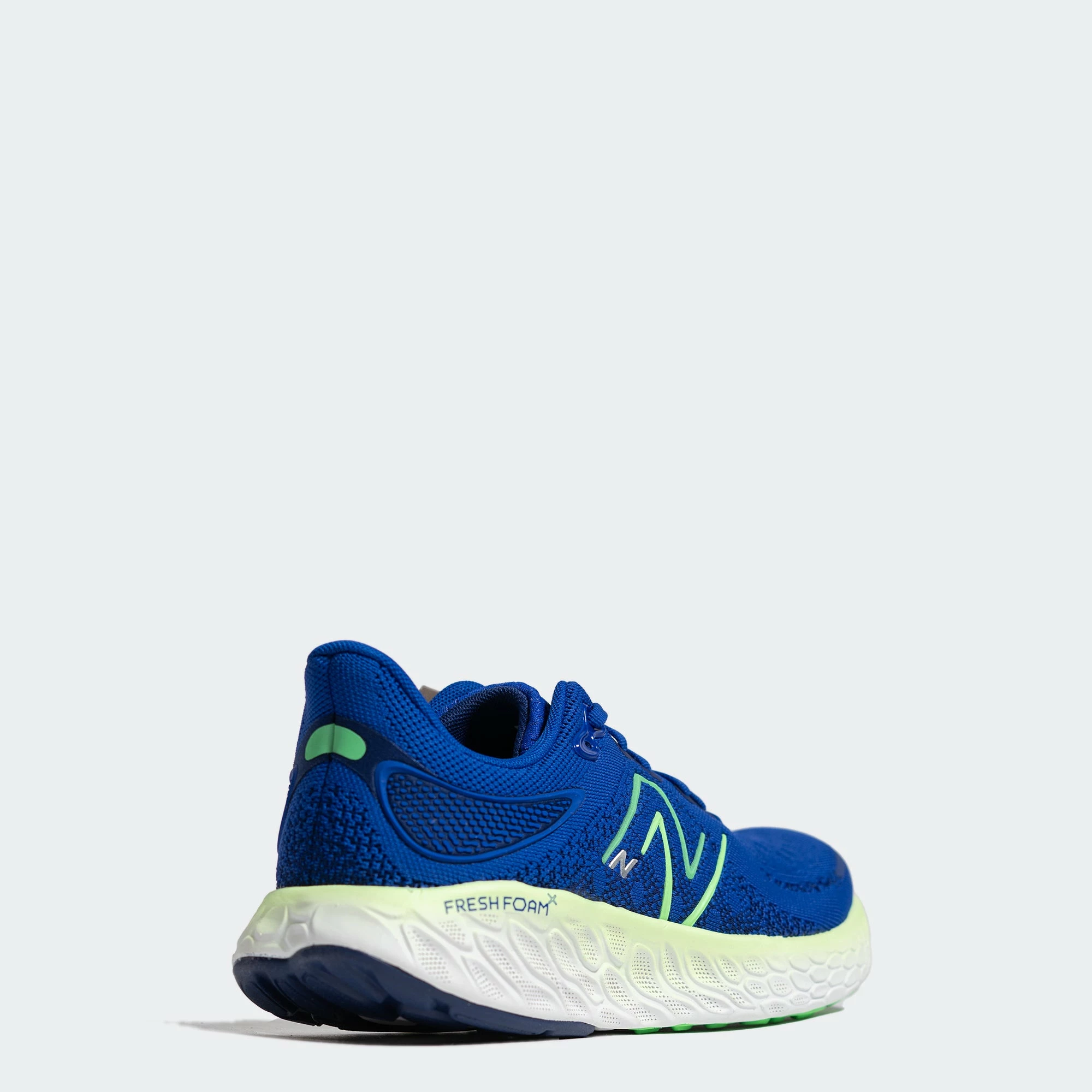 The New Balance Fresh Foam X 1080v12 provides the ultimate ride for long runs. The New Balance running shoes are constructed of soft, stretchy knit uppers with super responsive Fresh Foam underfoot. The Ultra Heel technology wraps around the back of the foot for a snug, supportive fit. Comes in Blue with Green Apple and Vibrant Spring