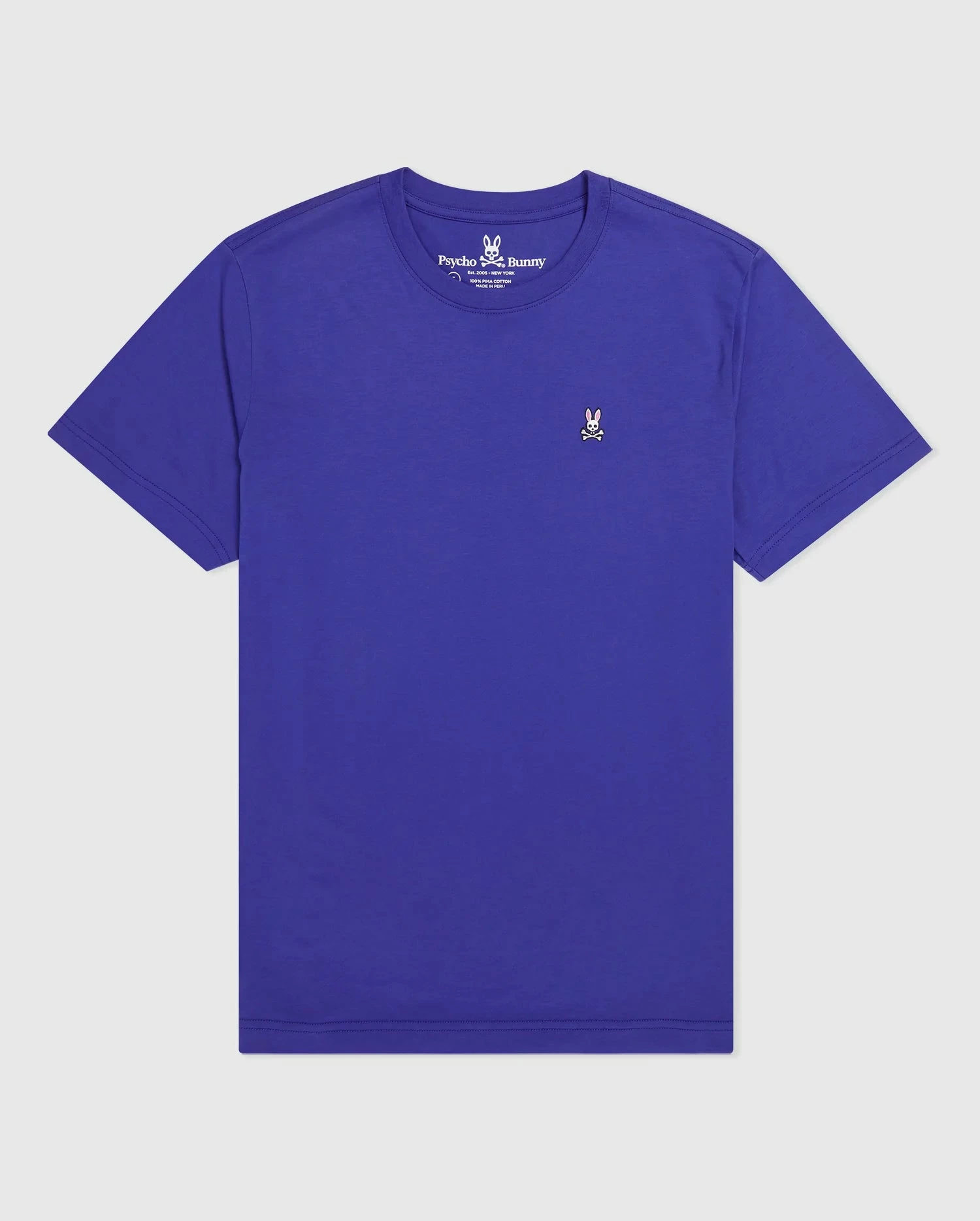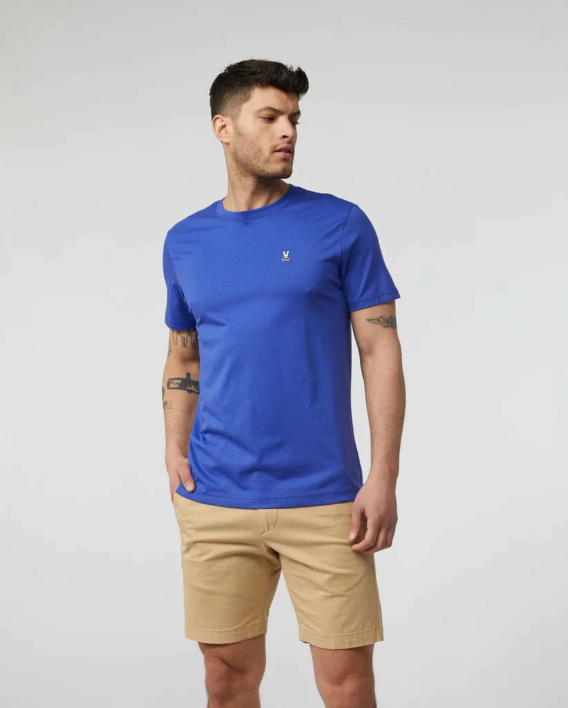 Diversify your collection of t-shirts with the Psycho Bunny Classic Crew Neck Tee. The 100% pima cotton t-shirt is designed with a crew neck and taped seams. Constructed to be a trim fit that sits in between a classic and slim fit. The Psycho Bunny logo is embroidered on the chest.