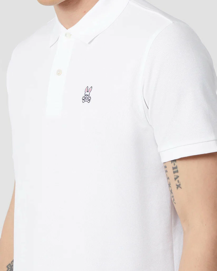 Make it a classic, preppy day with Psycho Bunny. The Psycho Bunny Classic Polo is made with 100% pima cotton and features mother-of-pearl buttons and intricately embroidered Psycho Bunny logo. The polo’s collar is made to stay flat and not roll or curl up. The knit taped seams will keep you comfy all day long.