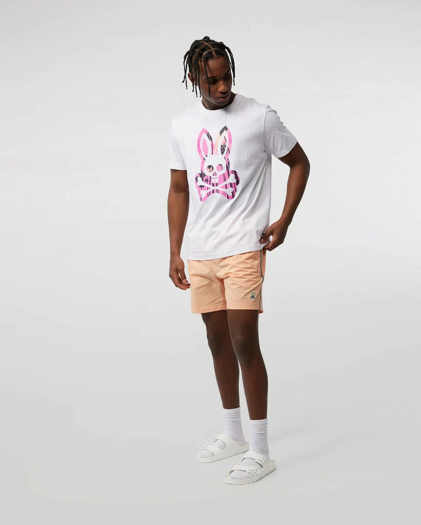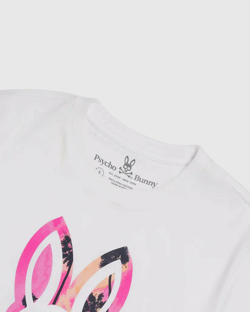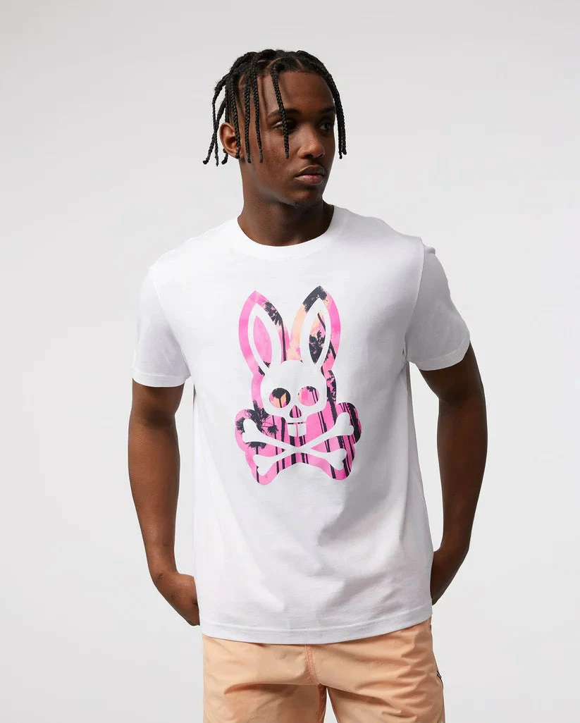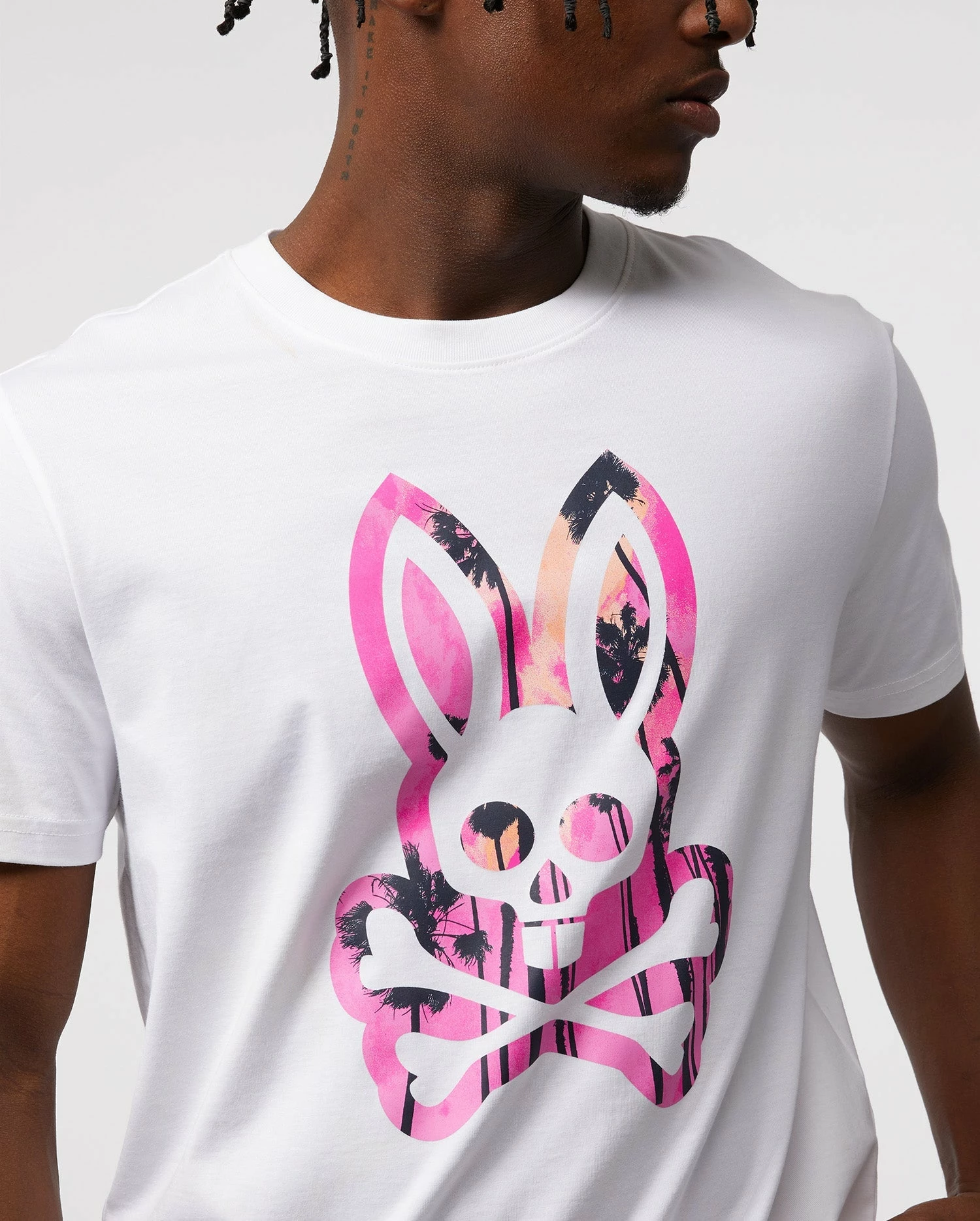 The Psycho Bunny Leeson Graphic Tee takes on a California vibe with a Psycho bunny logo in front. The 100% pima cotton t-shirt is designed with a crew neck and taped seams. Constructed to be a trim fit that sits in between a classic and slim fit, the t-shirt is also cut slightly longer for more coverage.