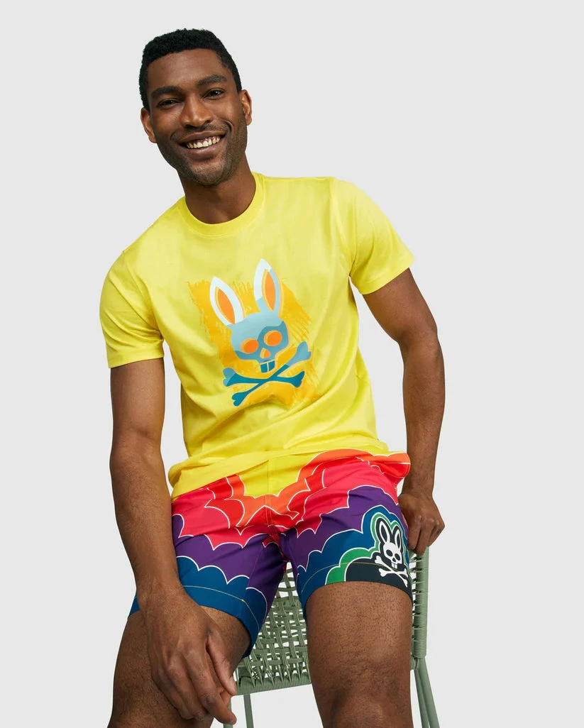 The Psycho Bunny Surrell Graphic Tee takes on a summery vibe with a Psycho bunny logo in front. The 100% pima cotton t-shirt is designed with a crew neck and taped seams. Constructed to be a trim fit that sits in between a classic and slim fit, the t-shirt is also cut slightly longer for more coverage.