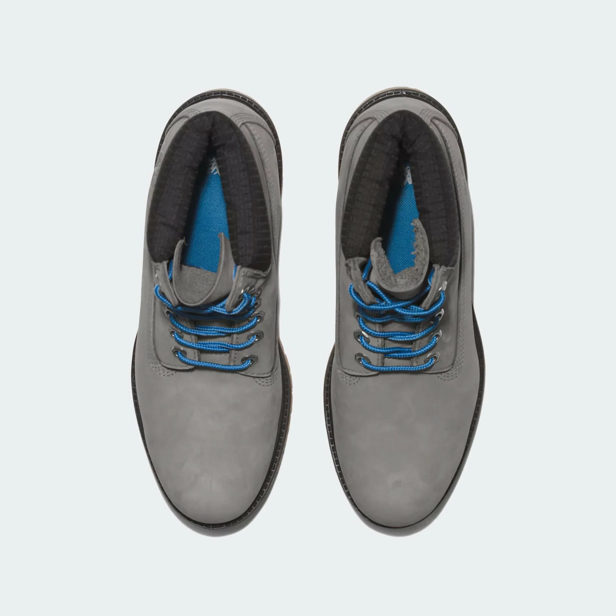 Forever a classic comes in modern grey with pops of blue! The Timberland 6-Inch Premium Waterproof Boots come in a fresh look for the season They’ll keep you warm and dry and on top of your style game. They’re made of premium leather and seam-sealed waterproof construction. The padded leather collars and exclusive anti-fatigue technology provides all-day comfort and support.