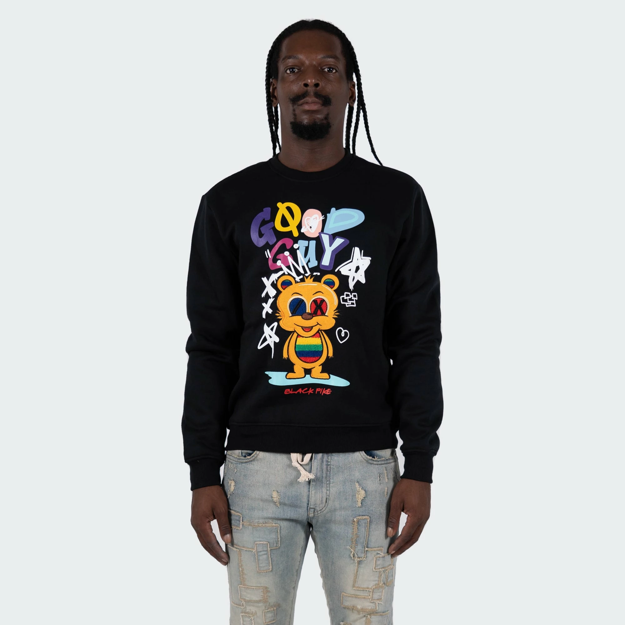 The TWO MILL TWENTY “Good Guy” Graphic Embroidered Sweatshirt features a creepy cute care bear with a fuzzy chenille rainbow patch on its belly and metallic thread embroidery. Don’t let the smile on this teddy bear sweatshirt for men fool you. Add an edgy twist to offset this sweet urban street style hip hop shirt by pairing it with your go-to distressed ripped and shredded acid wash denim jeans, your latest Jordan Retro releases and a crisp New Era 59FIFTY fitted cap. Made with 100% polyester fabric, this graphic crewneck sweatshirt for men won’t shrink or lose its shape. Get your graffiti art style rapper clothing for men today!